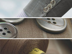 面料选用SCABAL, ERMENEGILDO ZEGNA, HOLLAND SHERRY,1881, VBC, LORO PIANA, MARZONI等, 世界顶级面料; 辅料采用德国Kufner衬, 德国GUTERMANN高级缝纫线, 德国Helsa垫肩,日本YKK拉链.